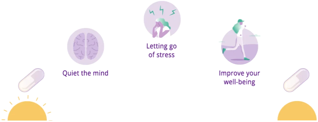 Take two capsules a day to quiet the mind, let go of stress, and to improve your sense of well-being.